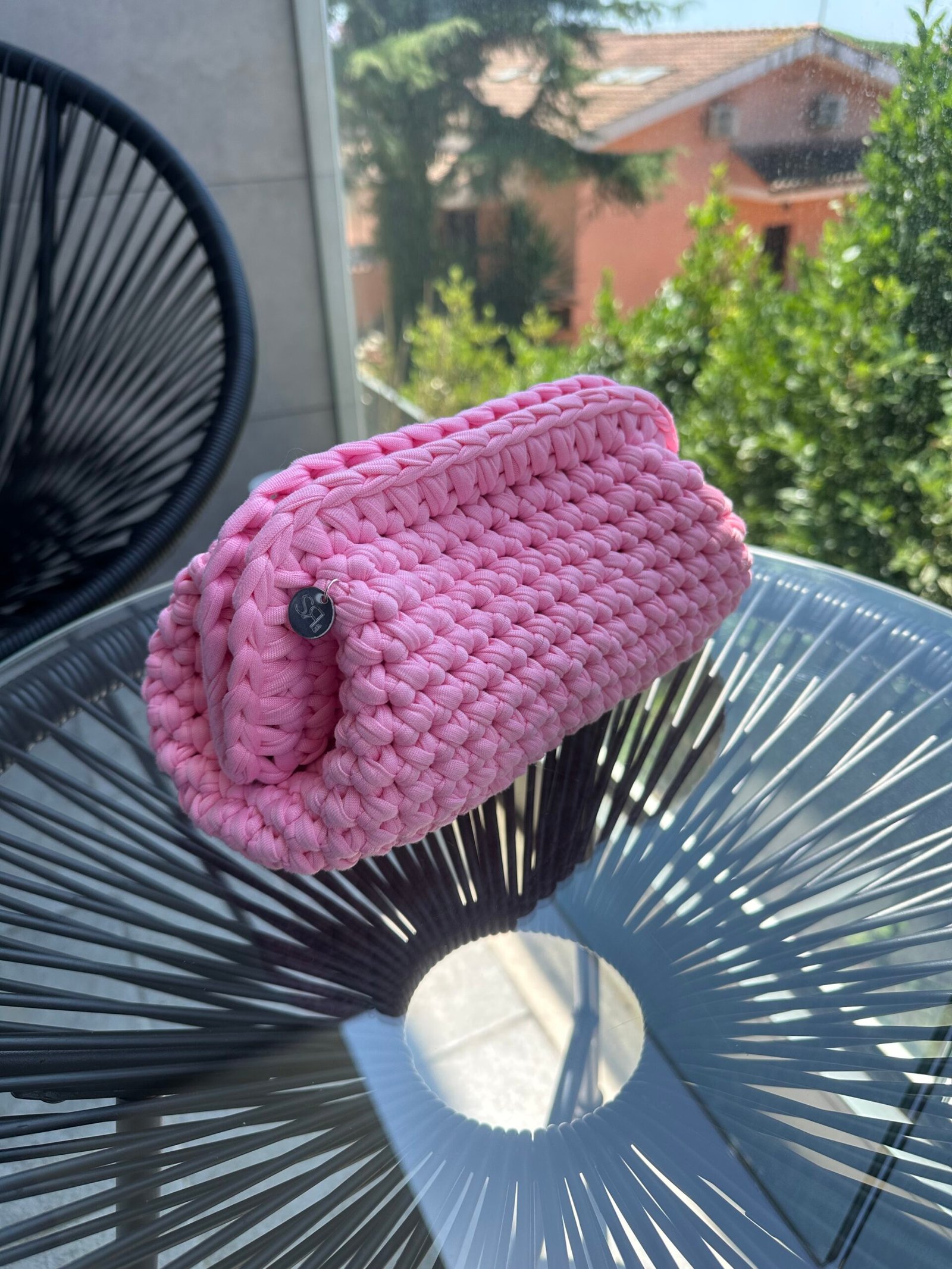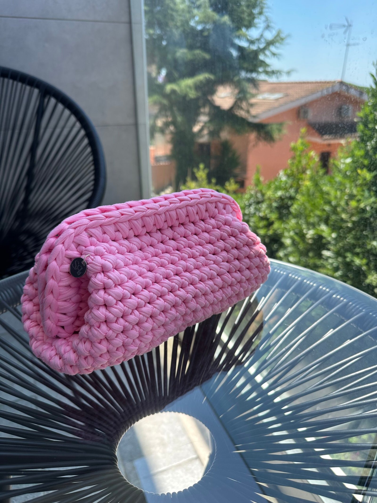 Realizzata interamente a mano all’uncinetto con corda in poliestere di alta qualità.