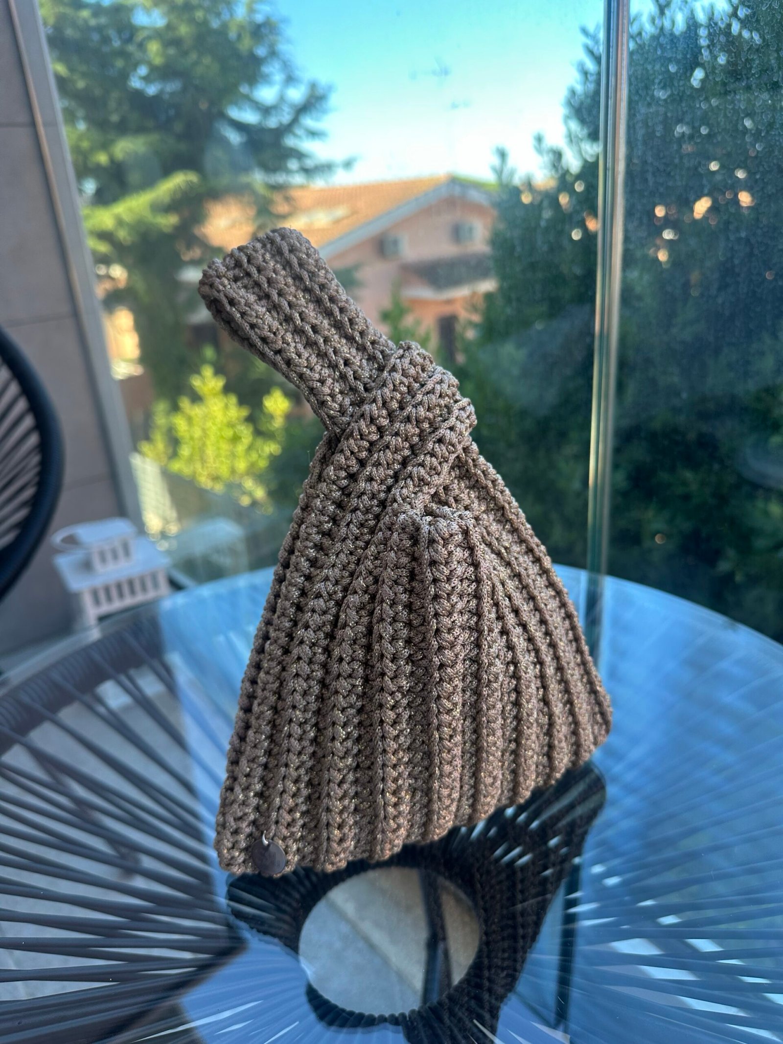 La sua forma compatta e il design a nodo la rendono un accessorio unico e distintivo, capace di valorizzare anche il look più semplice.