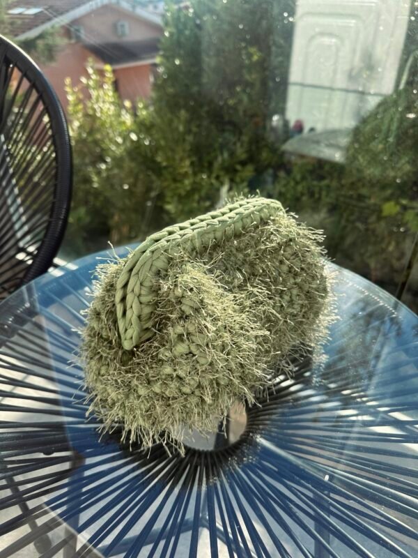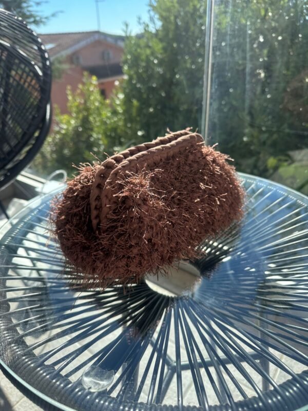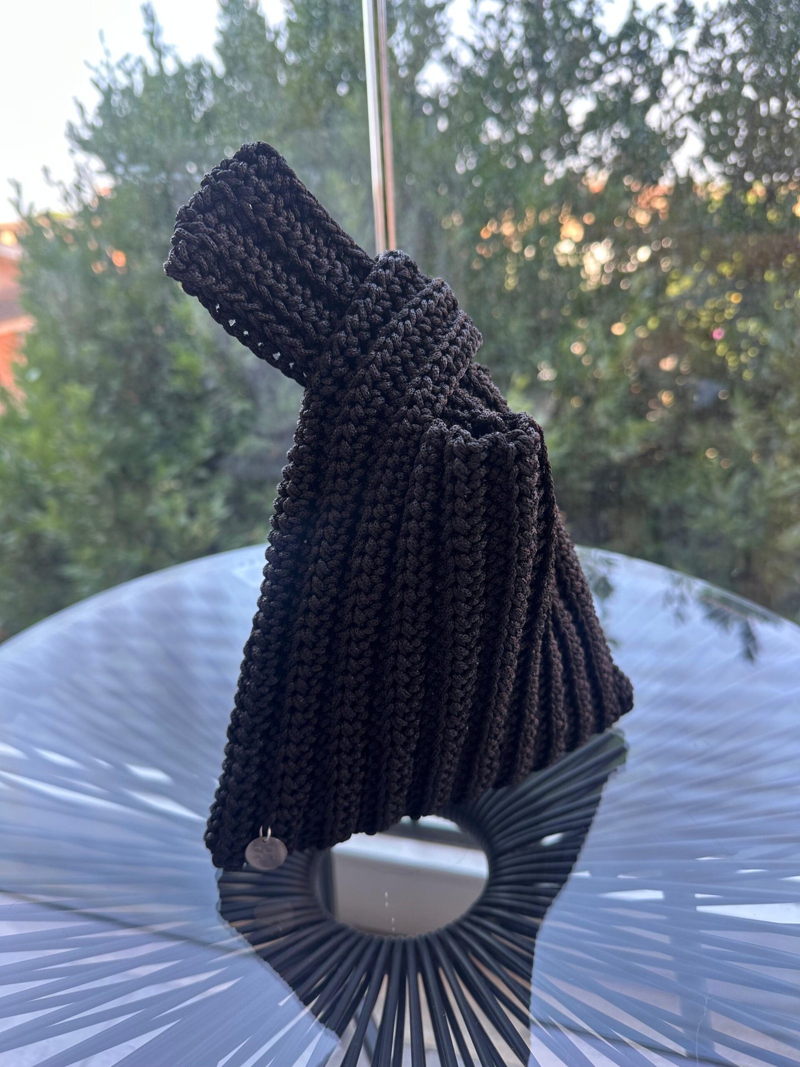 Realizzata interamente a mano all’uncinetto con cordino pregiato, unisce eleganza artigianale e praticità quotidiana.