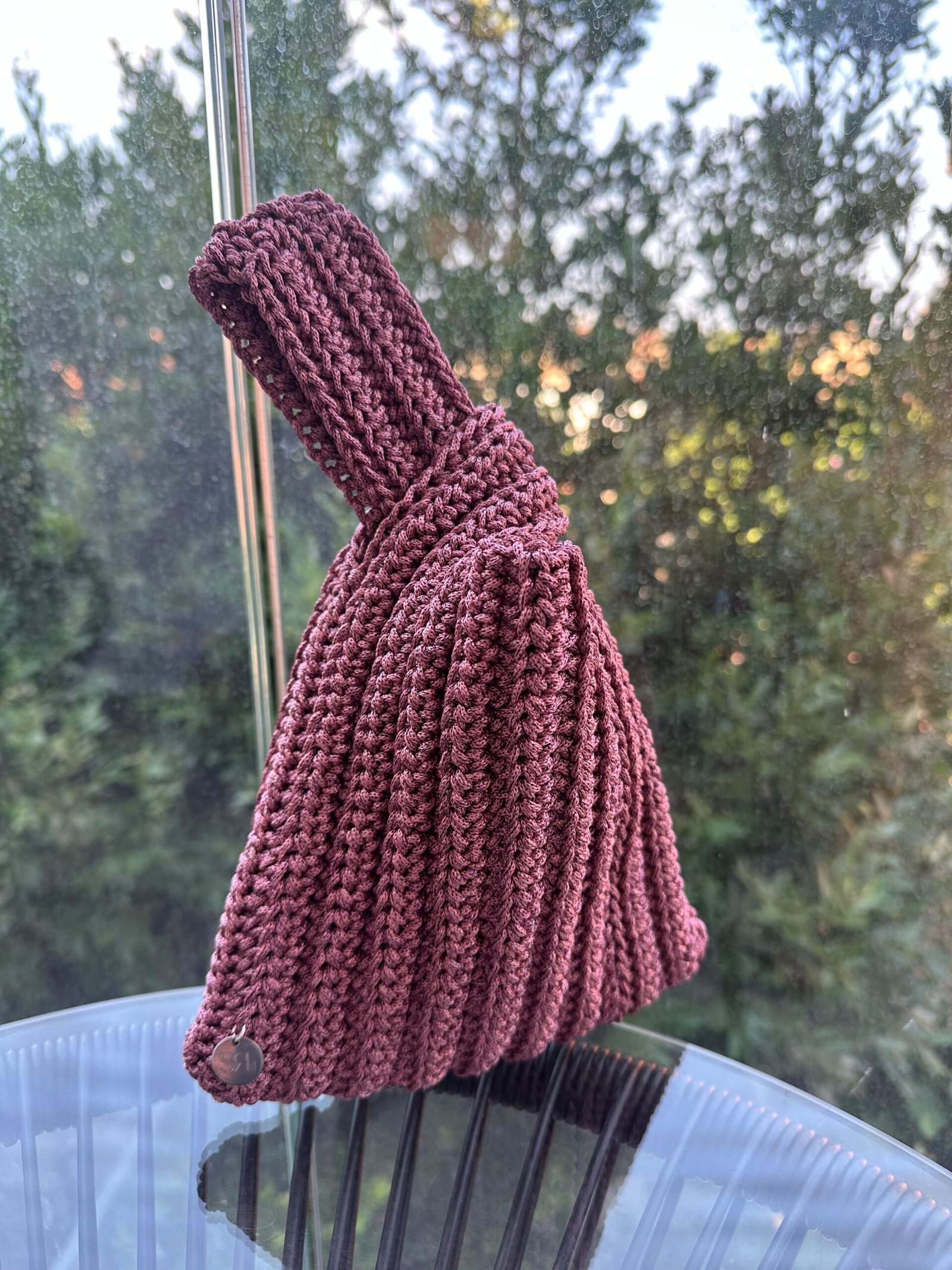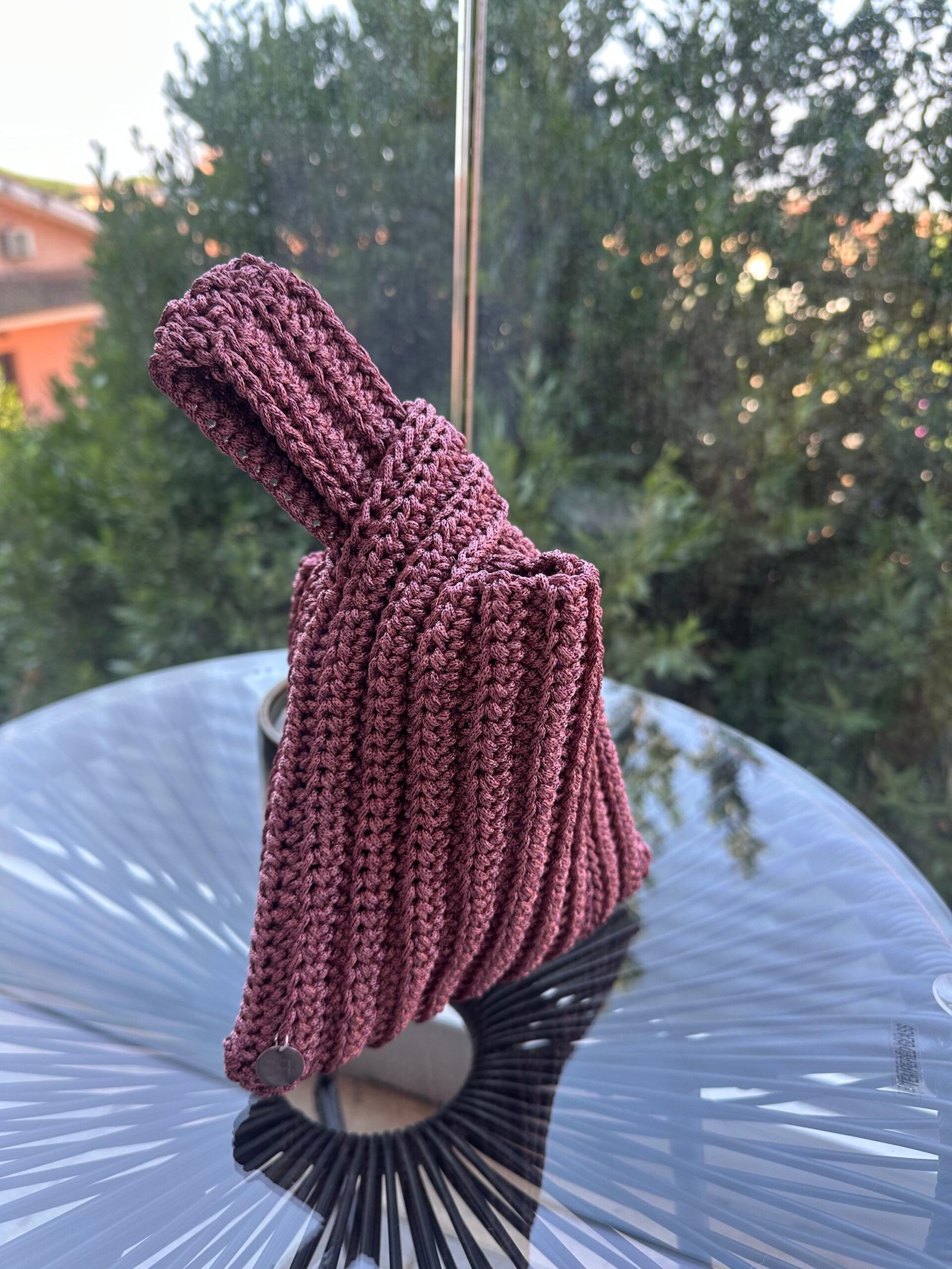 Realizzata interamente a mano all’uncinetto con cordino pregiato, unisce eleganza artigianale e praticità quotidiana.